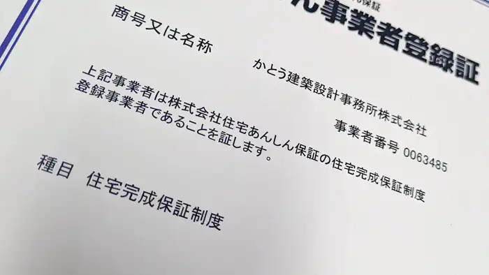 住宅完成保証の更新をしました 2025年11月10日 最終更新日時 : 2025年11月4日 加藤 晴康 こんにちは、加藤です。先日、住宅完成保証の更新手続きが無事終わり登録証が届きました。 住宅完成保証は、会社の過去3年分の決算書などから財務状況をチェックしてもらい、厳しい審査基準をクリアした会社に与えられる優良住宅会社の証なのです。 毎年、更新してもらってるので決算作業が終わり次第決算書などの財務諸表を提出しています。昨今、住宅会社の倒産が相次いでいるので、住宅完成保証を取得していることが、これから家を建てる方に対しての安心材料になればなっと思って毎年更新しています。 この記事をSNSでシェア!