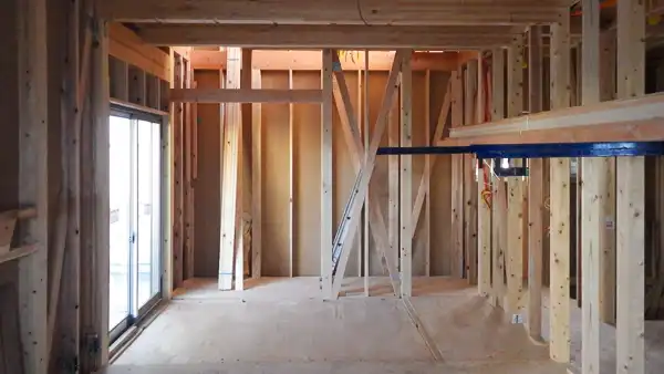 構造材の施工が終わると中間検査をします。構造用面材や筋違いなどがちゃんと施工されているか第三者機関もチェックします。