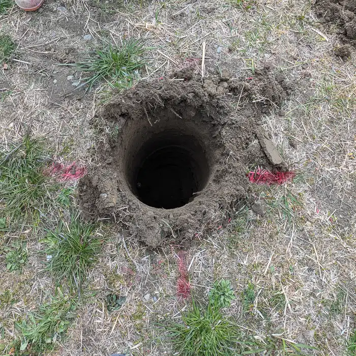 オーガーで孔をあけます